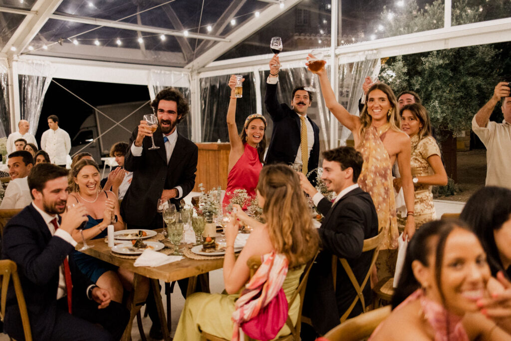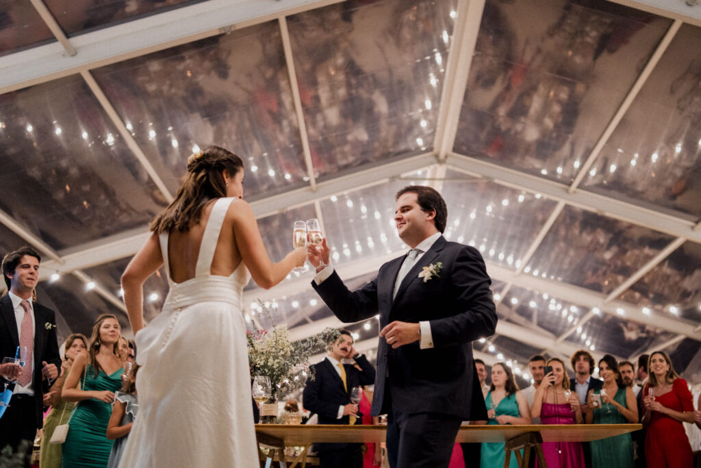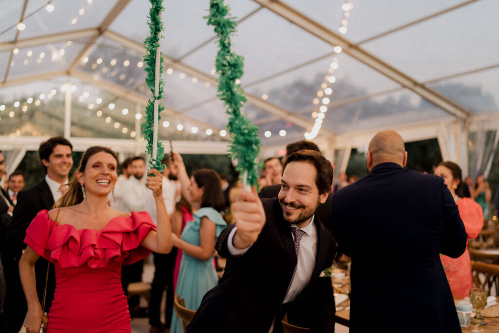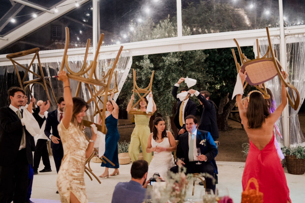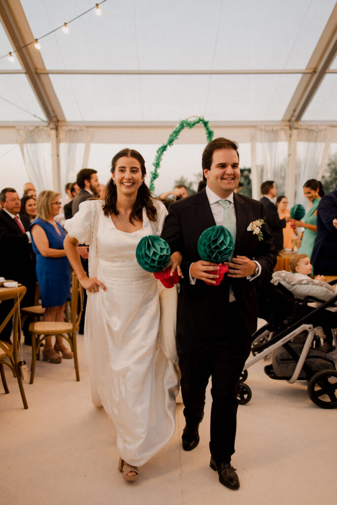 After the official “yes,” rice and petals were thrown over the newlyweds as they left in their car towards Quinta dos Ribeiros, where the party really kicked off. Each guest table had its own music, ensuring that the atmosphere was always lively during dinner.